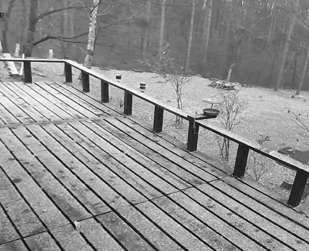 オフィスのウッドデッキに設置した外気温モニターは、今朝の6時過ぎにマイナス5.2°と、秋以降の最低気温記録を一気に大幅に更新した。 「朝陽に輝く白き世界」を期待してライブカメラの画像を確認。 エッ、何なの これ (°0° …