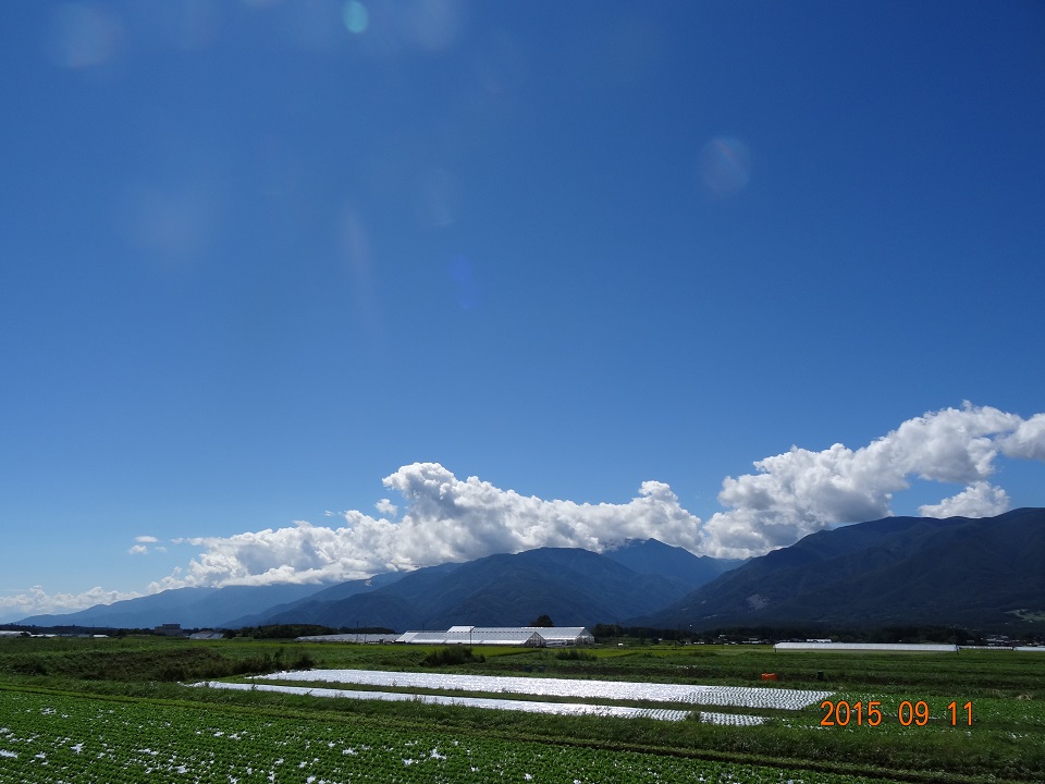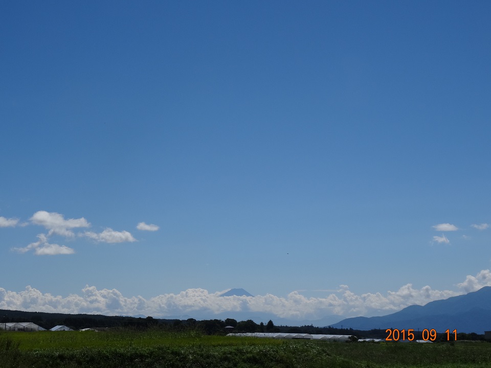 オフィスに帰る途中、「八ヶ岳エコーライン」の分岐口側のスペースに D4を駐車した。ここは、「八ヶ岳」「南アルプス」「富士山」が遠望できる私のお気に入りスポットである。同じポイントからズーム倍率のみ変更して山々を撮影した。真上を見上げると雲ひとつない青空なのだが、何故か山には厚い雲がかかっている。まあ、これはこれで風情がある。