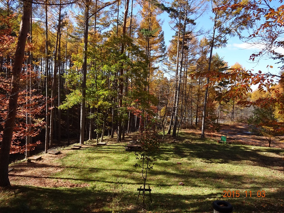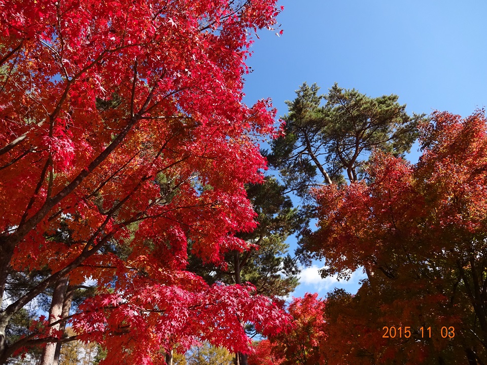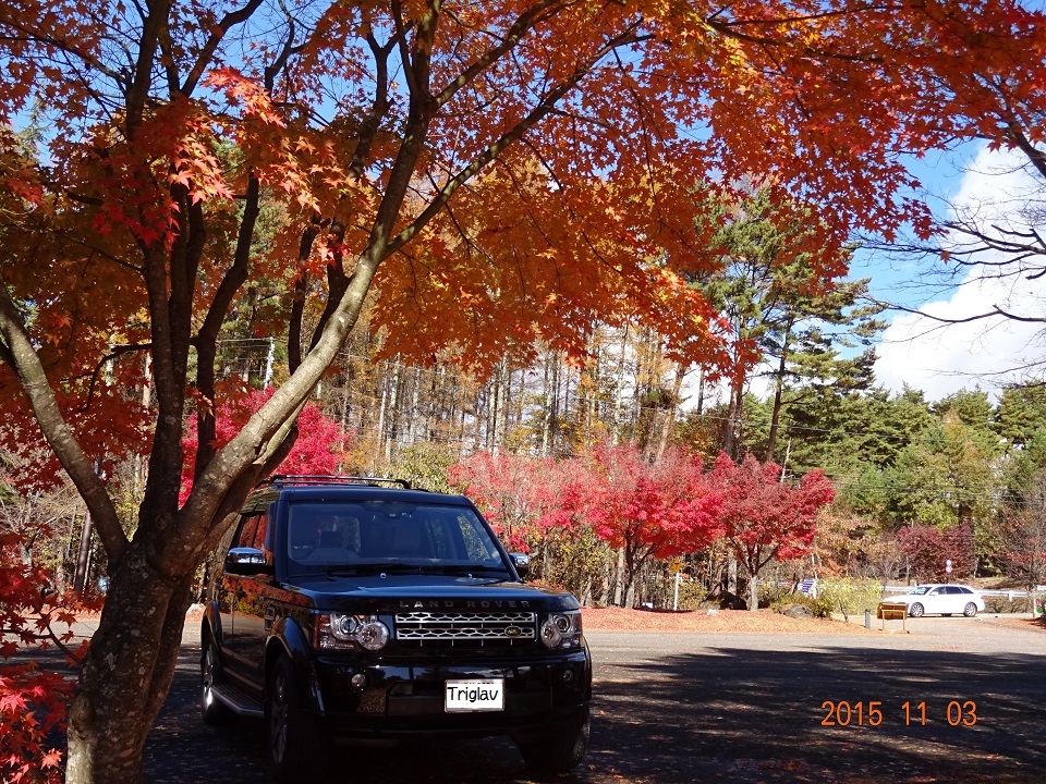 井戸尻考古館からオフィスに戻る途中、「ヨドバシカメラ 八ヶ岳富士見高原スポーツセンター」の駐車場に立ち寄る。紅葉(楓)の赤がとっても美しかったからだ。ここは、オフィスから車で1分程の距離にある。夏のお散歩コースの折り返し地点でもあるのだが、やっぱりこの季節が一番だ。