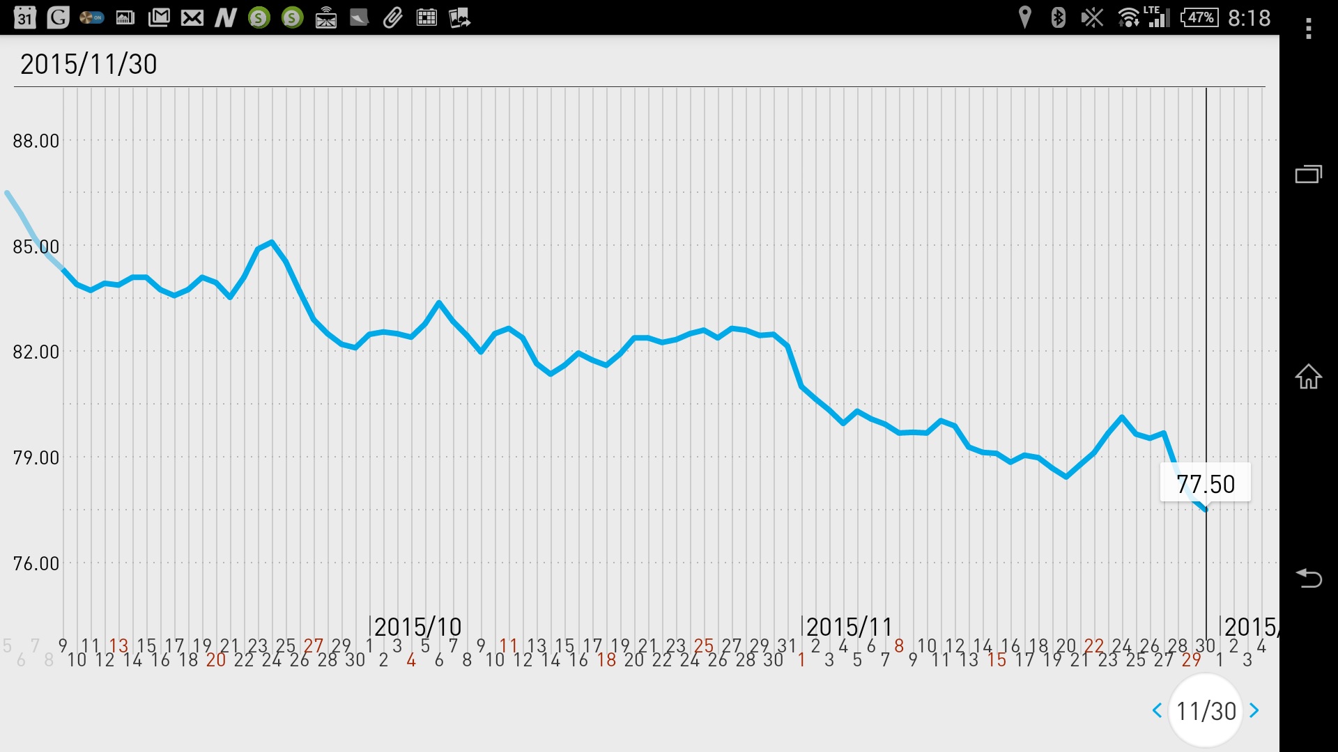 11月最終日である今日の朝の体重は、77.50kg。10月の全国講演を終えた直後、11月1日朝の体重は81.30kgだったので、今月も3.80kgの減量を達成したことになる。8月1日のダイエット開始日からは、12.50kgの体重減だ! 目標の75.00kgまで残すところ2.50kgとなった。体重が順調に落ちていくのは超嬉しいのだが、問題は、TRI八ヶ岳WiL稿房「第3の柱」などとぶち上げてしまった「ダイエット日記」の行く末だ。