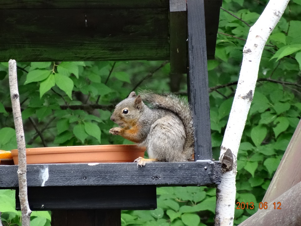 今日は、イカルだけを紹介したが、こんな給餌台(マーケット)の争奪戦が、日々、様々な野鳥の間で繰り広げられている。だが、給餌台には、別の上得意客が存在する。ヘッダーの写真に登場する「栗鼠(リス)」君である。このリス君、まったく凶暴そうには見えないのだが、彼の食事中は、どんな野鳥もまったく寄ってこない。だから、リス君は、悠々と給餌台に居座って、本来は野鳥さん達の餌であるヒマワリの種を凄い勢いで「収奪」して行く。リス君は、金融業界で言うところの『FinTech』なんだろうな…