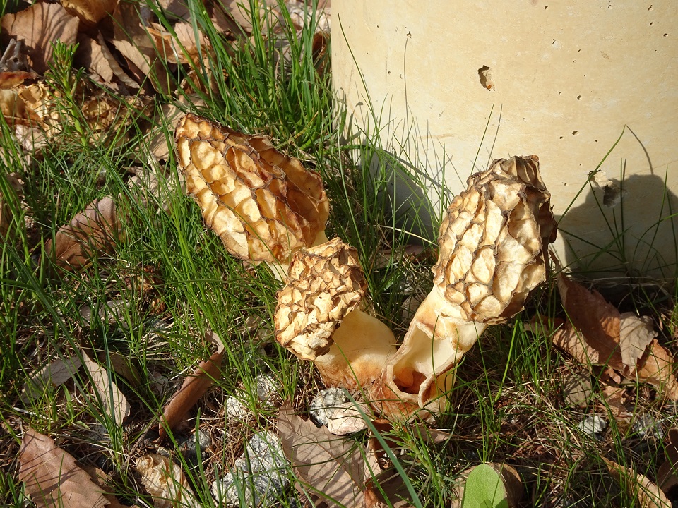 実は、このアミガサタケ、食用として「美味」なのだ。Wikipediaには「生鮮品を用いる場合もあるが、乾燥品をひたひたに浸る程度の水で戻した上で調理されることが多い。戻し汁にもよい風味が滲出しているので、一度漉して砂粒などを除いた後、調理に用いる。生クリームやバターなどとの相性がよいとされ、グラタンやシチューなどにしばしば使われる。ピッツァ、フライ、スープ、オムレツなどの素材としてもよく使われる。」などと記されている。これは「森からの贈り物だ!」なんて、すっかり良い気分になって、夫婦でもうグルメ気分だ。家内は「クリームパスタに混ぜようかしら」なんて言いながら、アミガサタケ(らしきキノコ)を採り集め出した。