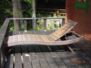 八ヶ岳滞在時の私の「お気に入り」の場所は、本宅メイン・ウッドデッキのロッキングチェアから、庭に置いた人工デッキ材の縁台スペース(https://www.triglav.life/?p=15919)」へと移ってきた。だが、昨夏に、オフィスにウッドデッキを増設して以降は、そこに置いた「ガーデン・ラウンジ・ベッド」がダントツのお気に入りになっている。