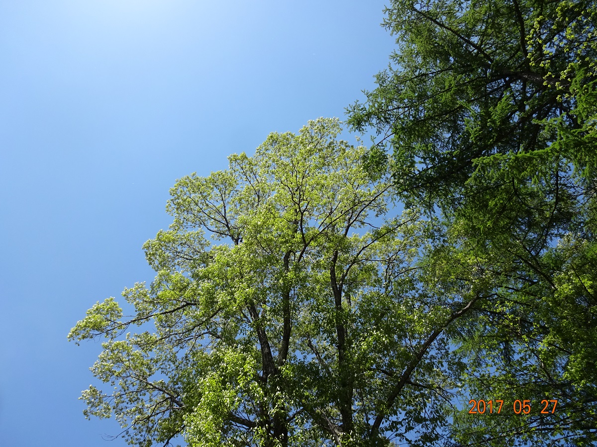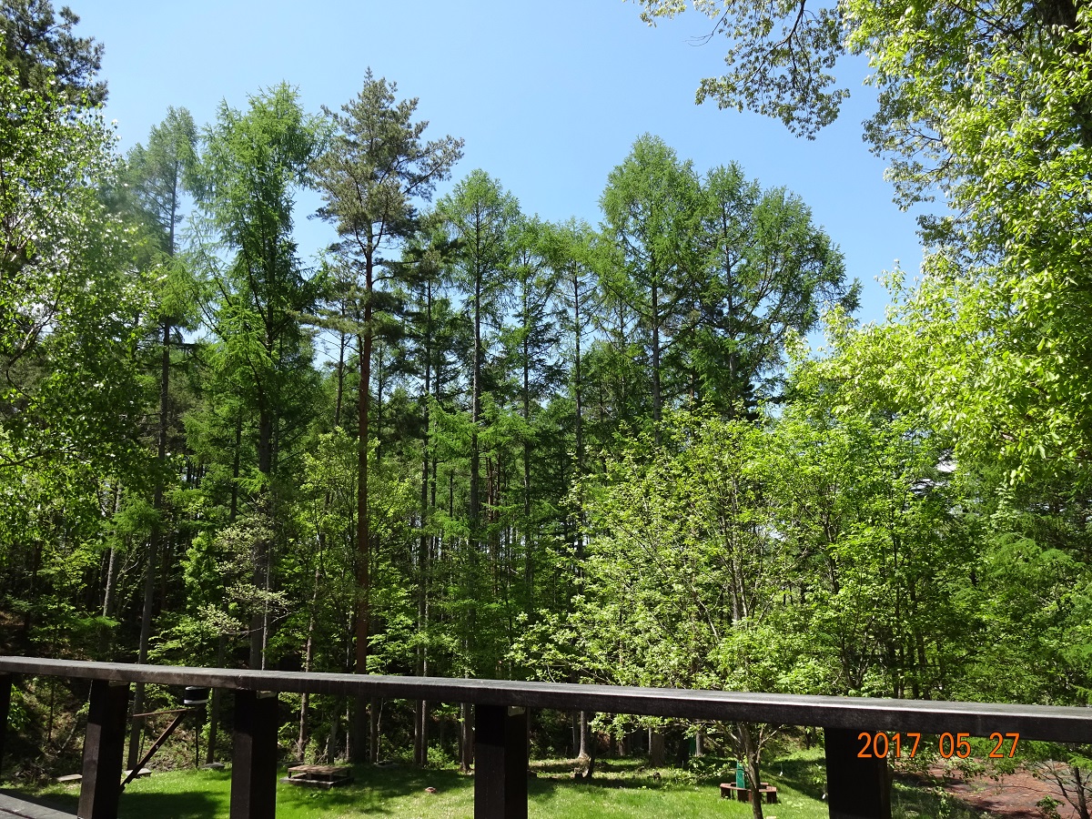 このベッドに寝そべって真上を見上げると、八ヶ岳ブルーの空と広葉樹の新緑のドームが目の前に広がる。樹間を野鳥が飛び交い、求愛と思えるさえずりが聞こえてくる。