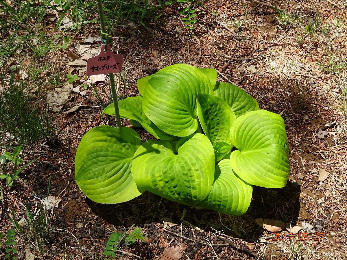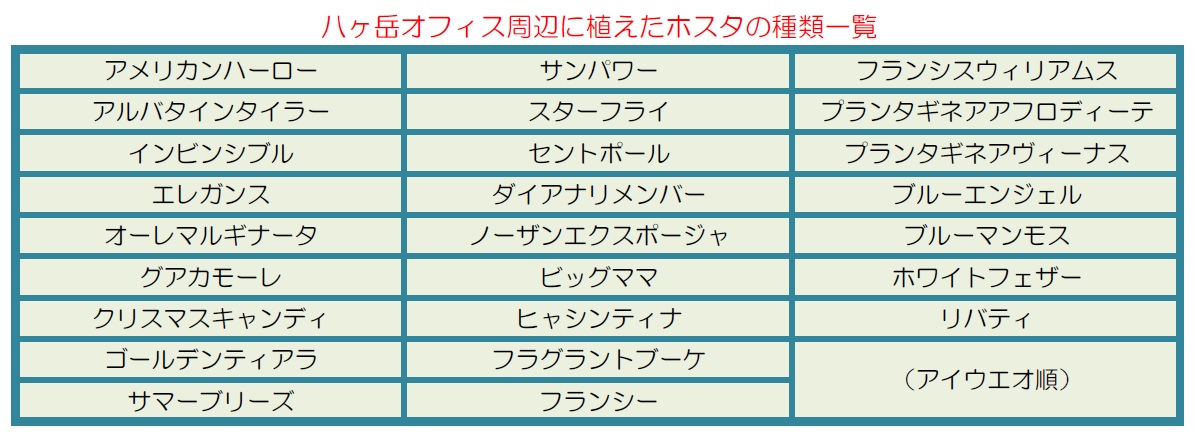前回5月中旬の八ヶ岳滞在時には、ほとんどが「新芽状態」であったのだが、大型種の一部は既に直径30cm程度にまで生長している。ブッドレアやアセビと異なり、ホスタ類は、オフィスのログ周辺を取り巻くように植えている(コンセプトはホスタに囲まれたオフィスである)。