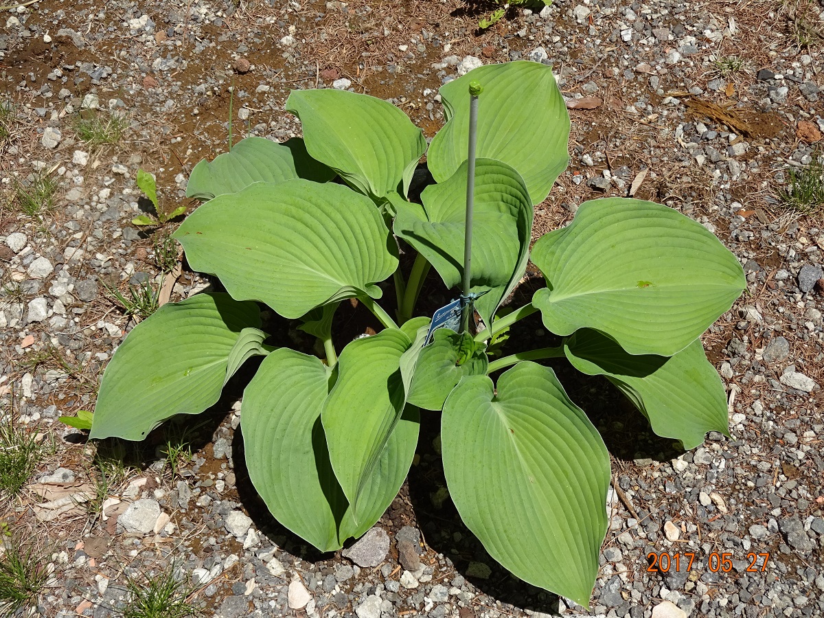 ここ数年、新しい種類のホスタに出会うと1株づつ購入して、オフィス周辺に植えてきたのだが、ふと、何種位あるのかを確認したくなった。私は、器は小さいが几帳面な性格なので、ホスタに限らず、購入した樹木や花卉類の名前(種類)、生育方法、購入店舗、購入価格、植栽日等は、関連書類をスキャンした上で、植栽時の状況を写真撮影。データはすべて、Evernoteのガーデニング note bookに保存してある。