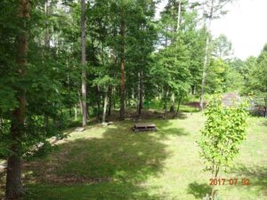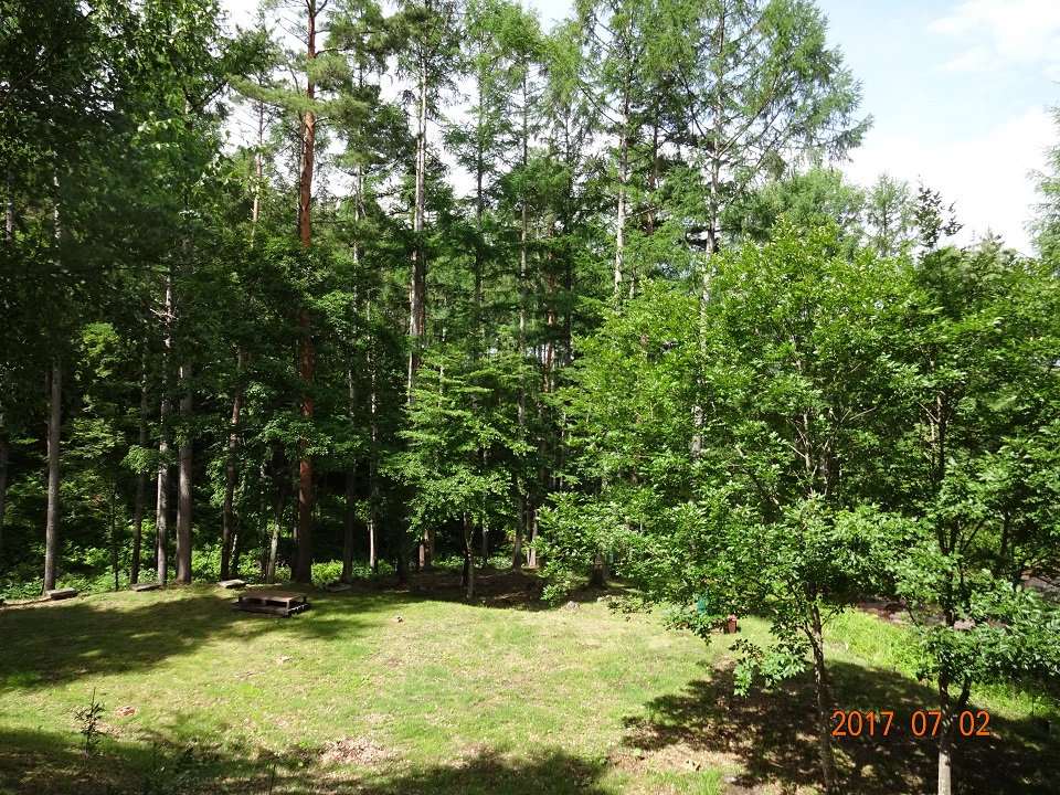 八ヶ岳の敷地の西側に位置し、元々は、松や広葉樹が密生しており、一見すると「手入れのされていない財産区林」といった感じのスペースであった。そこを思い切って大量に木を伐採し、下草を整理し、数年かけて、ツリーハウス向けの土地に仕立て上げてきたのである。