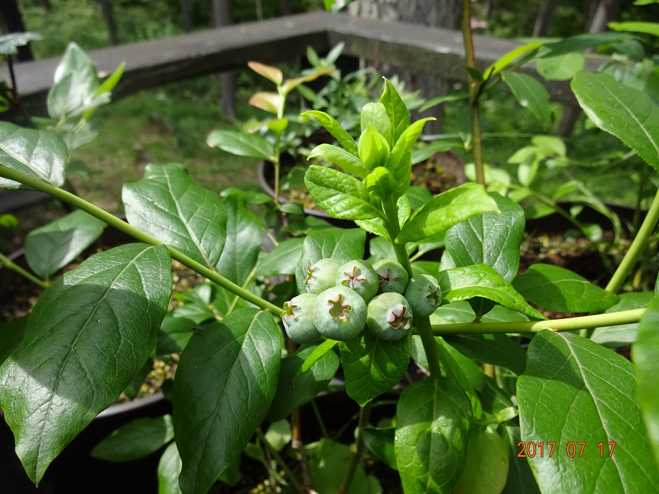地植えの際に、鹿と野鳥の食害で「壊滅直前」であったブルーベリーは、鉢植えしてメインデッキに移動(鹿はここまでは入って来ない)してからは急回復。改めて「鹿の食害」の凄さを確認した次第である。
