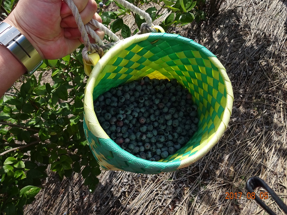 ブルーベリー摘みは「単調な作業」である。ブルーベリーの樹の側に立ち、濃い紫に熟した実のみをカゴに放り込む。その繰り返しである。どのような頻度で口に放り込むかは個々人の好みである。
