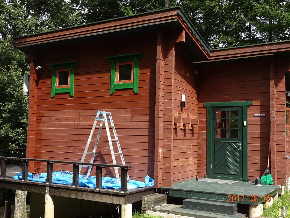8月19日~20日と八ヶ岳オフィスに家内とショートステイした。オフィスセルフビルドの際の初回の外壁塗装から4年が経過したので、再塗装を行うための滞在だった。