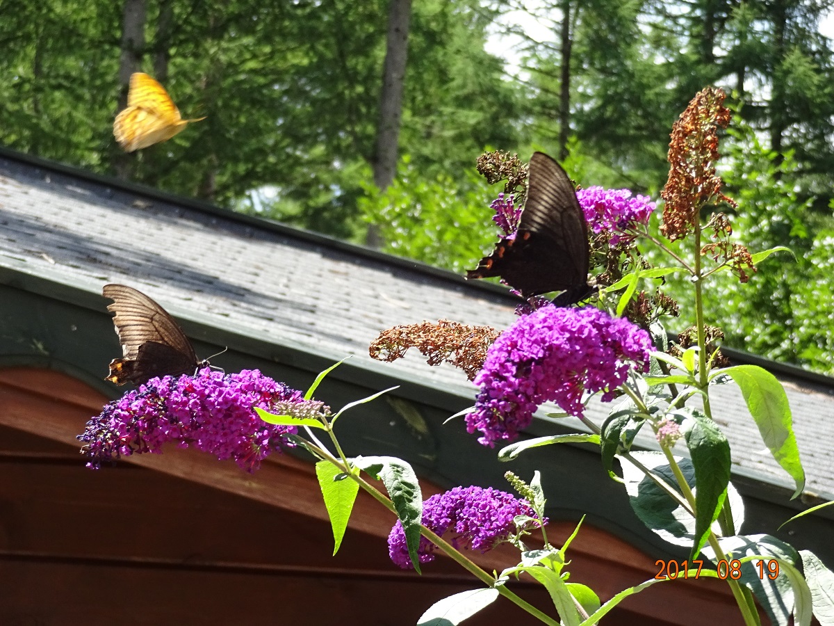 元々は「鹿に強い(鹿が忌避する))」という事で、オフィス周辺を彩る観賞用に植えたものである。これまでの3年間、鹿の食害はほぼ皆無、耐寒性は抜群で、剪定作業も容易。しかも開花時期は長く(2ヵ月以上と思える)、開花中は蝶の乱舞が堪能できる。正に「八ヶ岳生活」にピッタリなのだ。