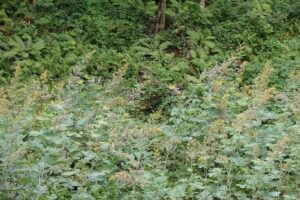 そしてアルカロイドの一種を含む(茎や葉を折ると黄色い汁が滲み出る)有毒植物である事も判明した。ナルホドね!だから、あの何でも食い尽くす鹿さん達が見向きもしないんだ。外見的に私の好みではないし、有毒植物(皮膚炎やアレルギーを引き起こす)である以上、我が家の敷地への侵入は「絶対阻止」するしかない。