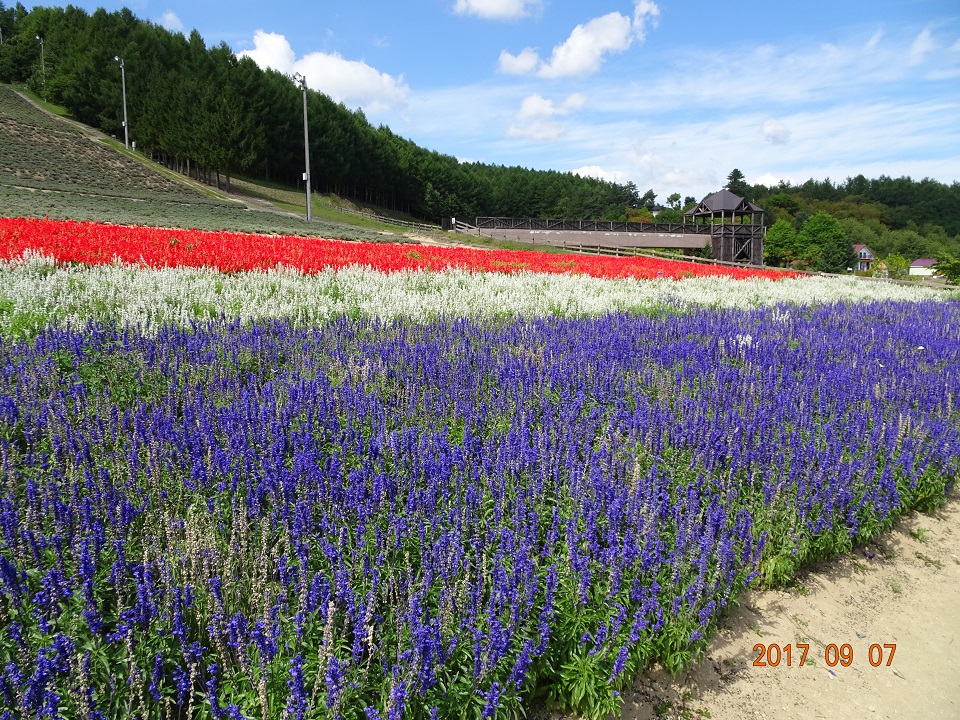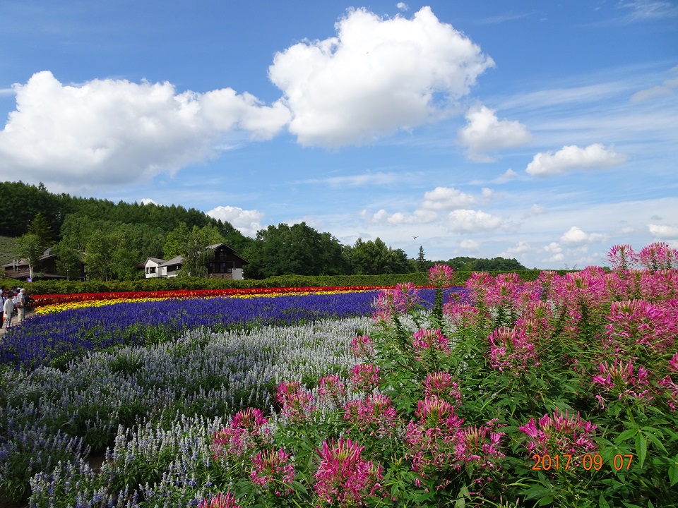 有名な「ラベンダー」の開花期は既に終わっていたが、それは承知の上で、むしろ色とりどりの初秋の花を堪能したいというのが社主のご要望だった。私は、千葉県の最南端、1年中花が咲いているような町で生まれ育ったので、花を見てもあまり感動する事はないのだが、花人街道の花畑の美しさとスケールの大きさには圧倒された。