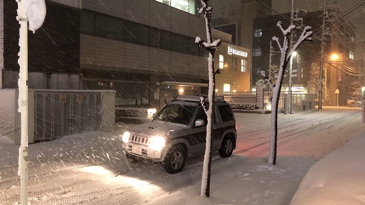 駅から自宅までは徒歩で12~3分の距離なのだが、身体的バランス感覚に欠如した私が、転倒するリスクが極めて高いのは「オフィスセルフビルドの際の自爆テロ」で実証済みである。そこで、社主さま(家内)に電話して「吹雪だからD4出動してよ。」と救助要請。すると「イイよ。私のミニパジェ(当然ながらスタッドレスタイヤ装着)で迎えに行くから。」との力強い返事。そうだった、ジムニーやパジェロミニは、雪上性能ではランクルやディスカバリーに負けないんだった。