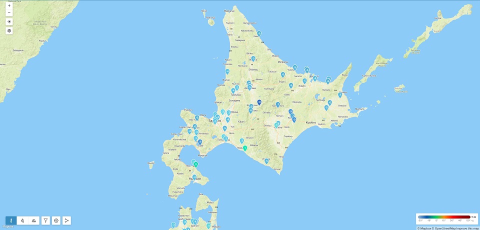 北海道富良野周辺にマイナス13℃を表示するステーションが1機あるのみで、他にマイナス10℃以下の表示はない。「やった~\(^o^)/ 寒さでは、我が八ヶ岳エリアの圧勝だぞ!」と大はしゃぎ。これは、あくまでも世界各地に設置されたNetatmoステーションから送られてくるデータでの比較であるが「何でも1番は良い事だ」。
