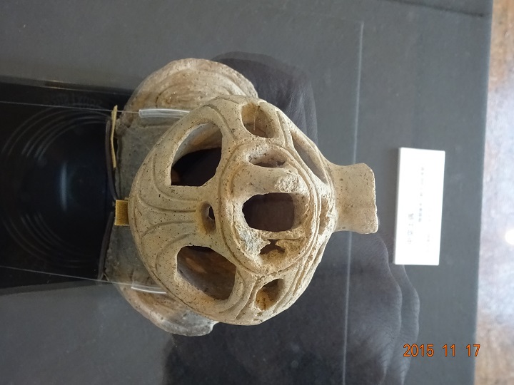所蔵は北杜市考古資料館。弊社オフィスからは車で20分程の場所にある。考古資料館から、車でさらに、ほんの数分の「金生遺跡」は、八ヶ岳南麓のほぼ中央部、標高800m付近の尾根上に位置している。