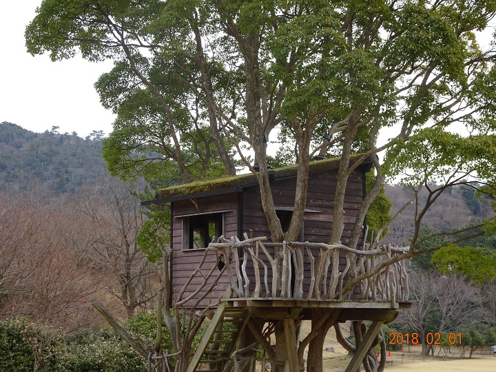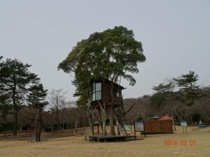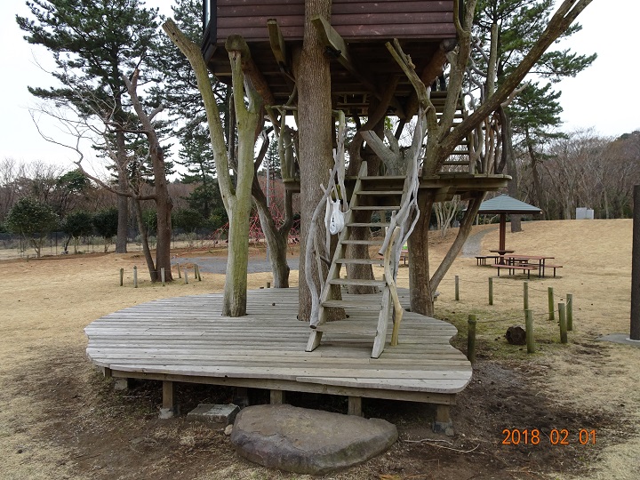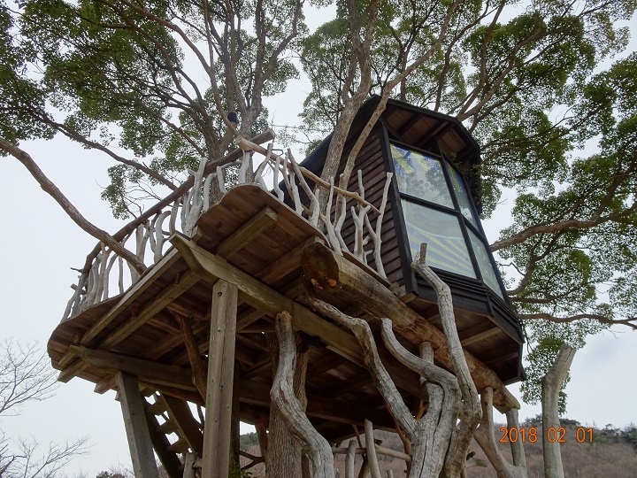 2月1日に予定されていたお仕事がその前週に前倒しリスケ出来たので、零細企業経営者特権で、急遽、2泊3日の伊豆・箱根小旅行を楽しむ事にした。伊豆高原で1泊し、2日目に箱根に移動する前に隙間時間が出来たので、周辺のツリーハウス情報をWeb検索。すると宿泊地から車で30分程の場所に『稲取高原芝生広場ツリーハウス(お洒落なネーミングが必要だと思う!)』なる建築物がヒットした。