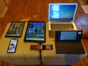 なお、今回の八ヶ岳出社では、iPad miniは「お留守番」で写真の中には不在。勿論、miniもお揃いのスーツを纏っている。