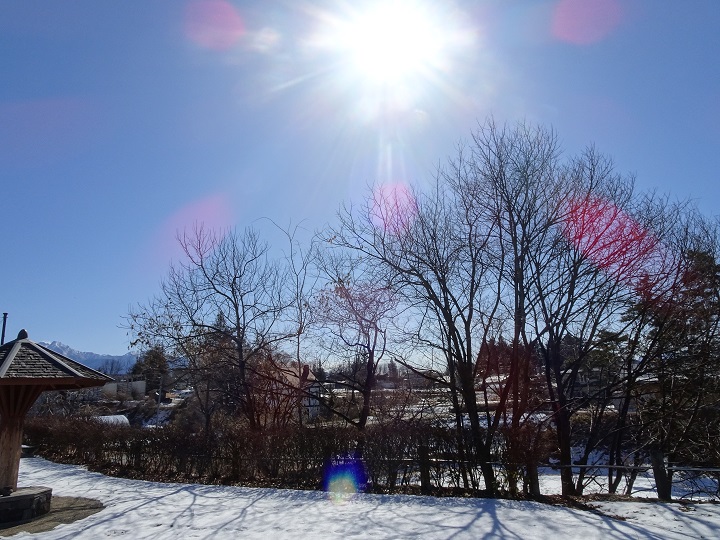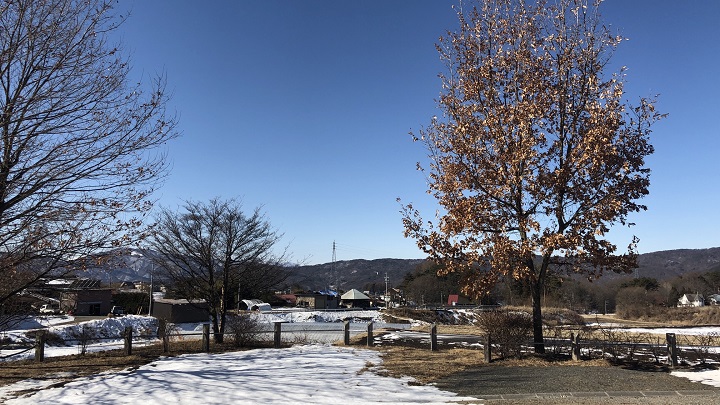 「雪に覆われた遺跡公園」の写真を撮影するつもりだったのだが「中ッ原遺跡公園」は兎に角、陽当たりが良い。さらに、我がオフィスが標高1,300m(厳密には1,320m)の地にあるのに対して、中ッ原は950m。この370mの標高差は大きい。周辺の雪はほとんど解けてしまっていたのだ。この点は誤算だったが、八ヶ岳ブルーの空の美しさは素晴らしさは期待以上。