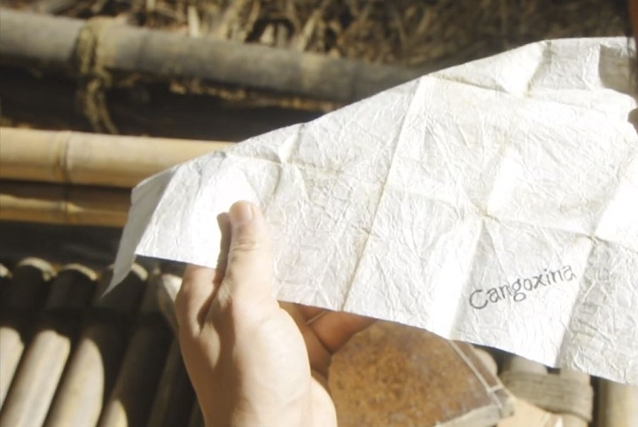 ここでは手摺りと床の素材が見える。手摺りはやはり竹であるが、床材部分には「節」がない(画面に映った範囲では見えない)。強度を確保するために鉄かプラスチックのパイプでセットを組んだのかな? と勝手に想像。