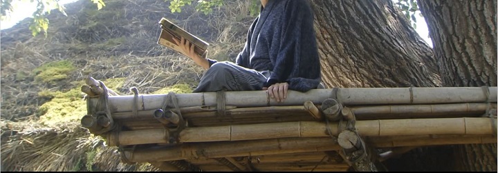 壁や屋根が無い分、樹上の縁台の重量は相当に軽くなるので、成人男性2人が座っても耐えられるであろう。「読書や思索のスペース」と割り切ってしまえば、こんなのも十分にありだな!