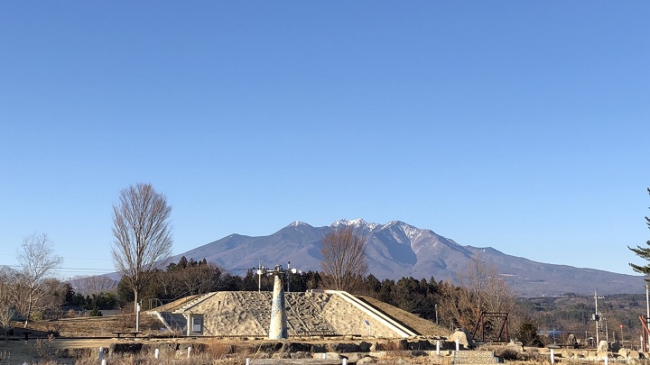 入館する前に、温泉施設の隣りにある「親水池」なる広場から八ヶ岳を眺める。