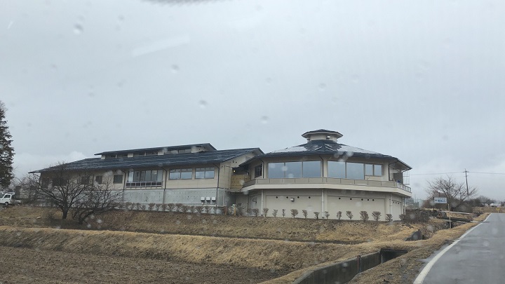 視界が悪いので安全運転に徹し走行。15~16分走ると、初めて「望岳の湯」と表示した案内板が現れた。右折して八ヶ岳方面に上っていくと、すぐにそれらしき建物を発見。見事な位に周辺は田畑ばかりだ。