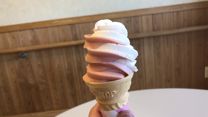 「バニラとストロベリーのミックス1つ下さい。」「はい、300円です。」体が勝手に500円玉を取り出していた。その後も、頭からの停止命令を無視して、体が流れるような所作でソフトクリームを味わうモードに進んで行く。なんと、iPhone Xを取り出して写真撮影までするではないか…まるで悪夢を見ているようで、「ウイングガンダムゼロ」のパイロットになったような気分だった(この件は、ガンダムマニアじゃなきゃわかんないだろうな…)。