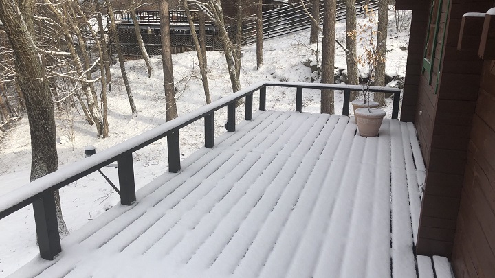 この八ヶ岳の「気紛れな天候変化」をお伝えするには、文章よりも写真の方が説得力があるだろう。題して『目覚めたら雪国10景』。