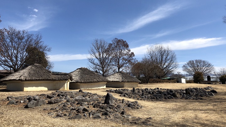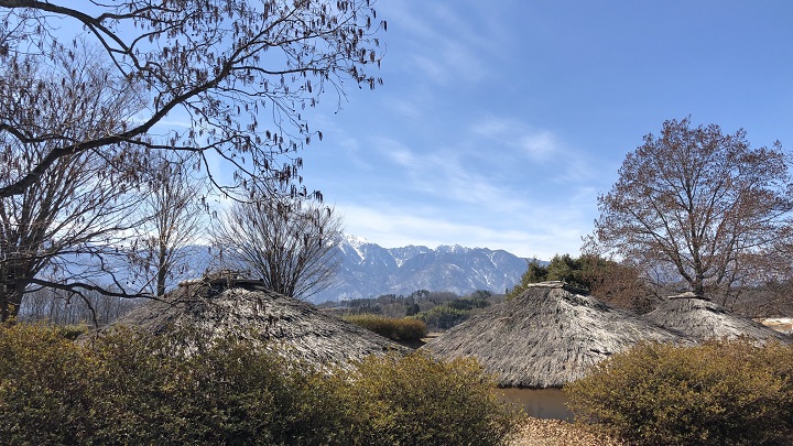 金生遺跡では、このミステリアスな「配石遺構」が5基も発見されており、さらに住居跡も41戸確認されている。復元住居は、竪穴式住居ではなく「壁立ち住居」様式で造られており、初めて遺跡を訪れた際には、とても不思議な感じがした(本当に縄文人はこんな家に住んでいたのだろうか?)。