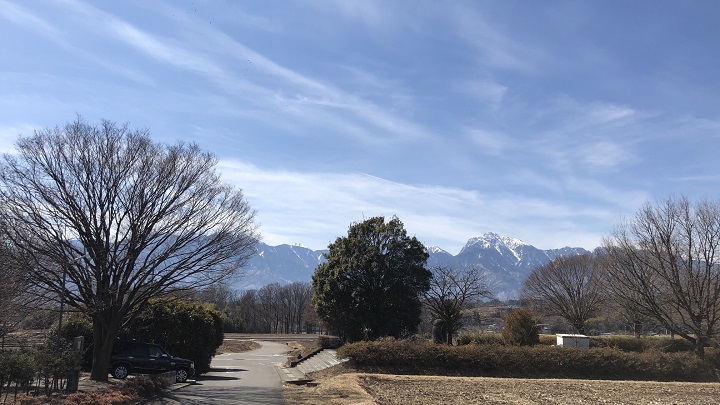 八ヶ岳オフィスからの距離は約17km、車で25分程の場所にあり、八ヶ岳、南アルプス、富士山の眺望がどれも素晴らしい。