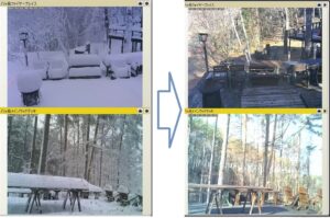 3月22日に30cm程度積もった雪(写真左側)は、その後2日程で見事に解けてしまった(写真右側)。まだ油断は禁物だが、どうやら「2年連続の雪掻き無し」となりそうだ。