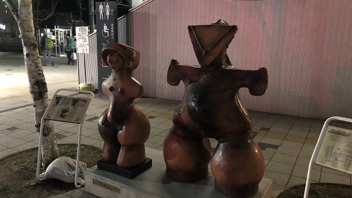 中庭的スペースで市民館全体の写真を撮影した後は、お隣の茅野駅の方に歩いて、「仮面の女神」さまの大型ポスター(?)と、「縄文のビーナス」さまと「仮面の女神」さまの大型レプリカにご挨拶。滞在時間15分程で市民館を後にした。
