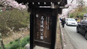 午前9時18分に八ヶ岳オフィスを発って、最初に向かったのが桜の名所「高遠城址公園(https://takato-inacity.jp/h30/)」である。桜見物のための無料駐車場に着いたのは10時30分。シャトルバス(桜見物のための臨時便のようで、料金は片道1人100円)に乗り込むとほんの数分で城址公園着。