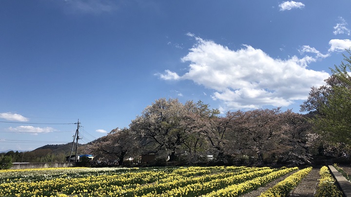 幸い、オフィスから河口湖に向かう途中の北杜市には、この桜の「名木」が何本もある。Googleマップで、北杜市の桜の名所を表示して、桜の名木探訪のプランを組んだ。正午過ぎに八ヶ岳オフィスを発って、最初に向かったのが、旧小淵沢町の「神田(しんでん)の大糸桜」(https://www.hokuto-kanko.jp/sp/sakura_shinden)である。