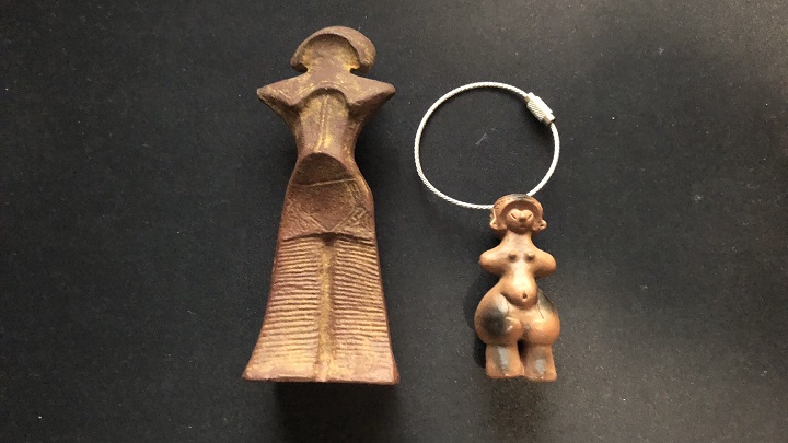 考古博物館に置いてある1回300円のガチャガチャでゲットした女神さまのマスコットを、私がキーホルダー風に加工しものだ。