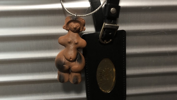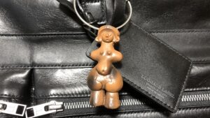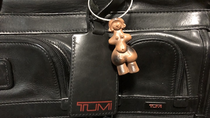 声のあった右後方を振り向くと、女性が1人立っていた。最初は何のことかよくわからなかった。だが、その人が、私が右肩にかけていた「日帰り出張のお供鞄」のひとつである PORTERのヘルメットバッグを指差していたので気が付いた。どうやら私が「お守り」として鞄にぶら下げていた「縄文のビーナスさま」の事らしい。