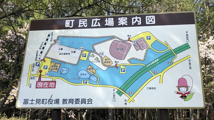 駐車場でふと周囲を見渡すと、満開の時期はやや過ぎているが桜が美しい。ん? ウォーキング・コースもあるじゃないか。折角だから、町民広場のお散歩を楽しむ事にしよう!以下、「お散歩10景」だ。