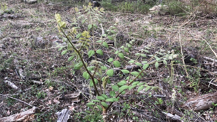 可憐な花々を楽しむ山野草ではないが、草刈り作業で、私が必ず温存するのが「タラノキ」である。その新芽である「タラの芽」は天麩羅等の食材として有名だ。今回、草刈り作業したエリア内でも60本近くを確認。