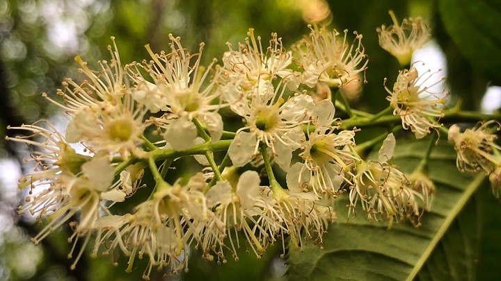 樹木の大きさとは関わりなく、個々の花のサイズが限りなく「控えめ」なのが愛らしい。