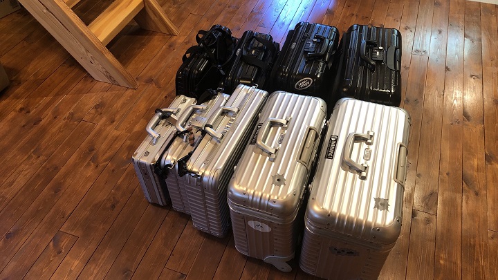Boleroとアルミ製を合わせた数は9個。大型スーツケースと社主さま分を合わせたら「13個のRIMOWA」だ! 改めて、「嵌まった(惚れ込んだ)」場合の自分の怖さ(執着心)を知ったような気がした。