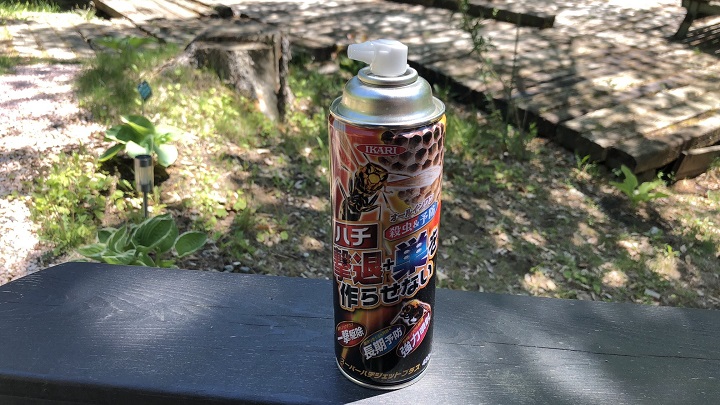 色々なタイプを実際に使ってみて、その結果、選んだ製品なので効果は立証済みである。アシナガバチであれば、直接噴霧すれば「即死」に近い状態となる。