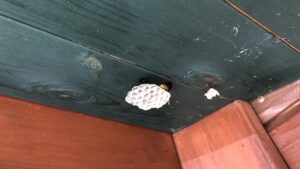私が、八ヶ岳オフィス退社前にした2つめの作業は、この「先制攻撃」。相手は「アシナガバチ」である。