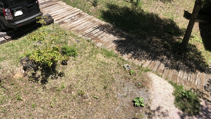 かつては屋根に上るのも、一番大型な脚立を使っての危険な作業であったが、オフィスウッドデッキ完成後はしっかりとした足場が出来たので、二番目のサイズの脚立で気軽に対応出来るようになった。