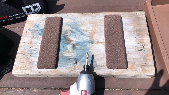 給餌台位ならば、わざわざオフィス地下室から電動工具を取り出す必要はない。今日の昼食後に空き時間がちょっとできたので、オフィスに常備している小型の電動インパクト・ドライバを持ってメインウッドデッキの作業台に向かった。