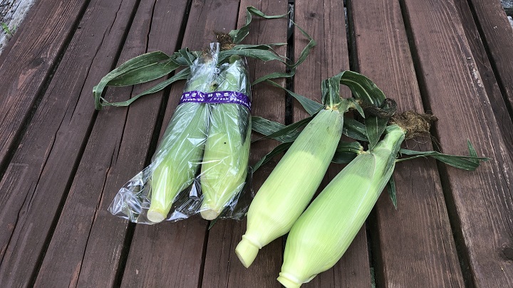 買い物に時間をかけるのは嫌いなので、トウモロコシのコーナーに直行。2種類が販売されていたので、とりあえず2本ずつ計4本を購入。その他、レタス、トマト、サラダルッコラ等々をショッピングカートに放り込んでレジに向かった。