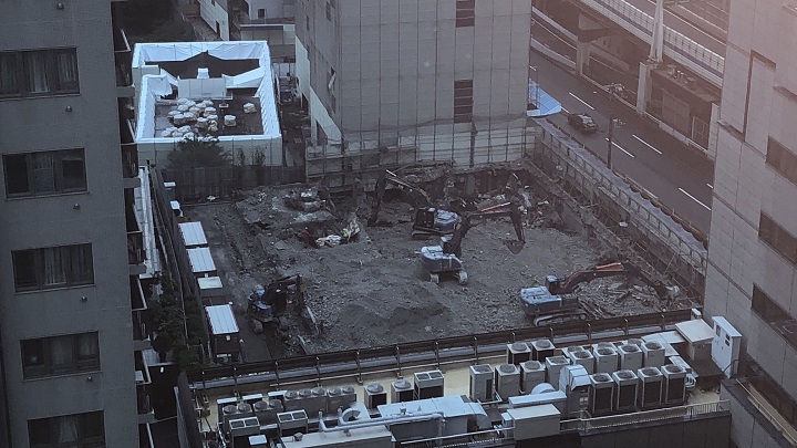 昨日は朝から六本木のオフィスでデスクワーク。午前11時頃、赤坂見附での会食の予定の前にちょっと空き時間が出来た。そこで、東京での仕事の際に使わせてもらっている泉ガーデン17Fの部屋から、近隣のビル解体工事の現場を珈琲を飲みながらボンヤリと眺めた。