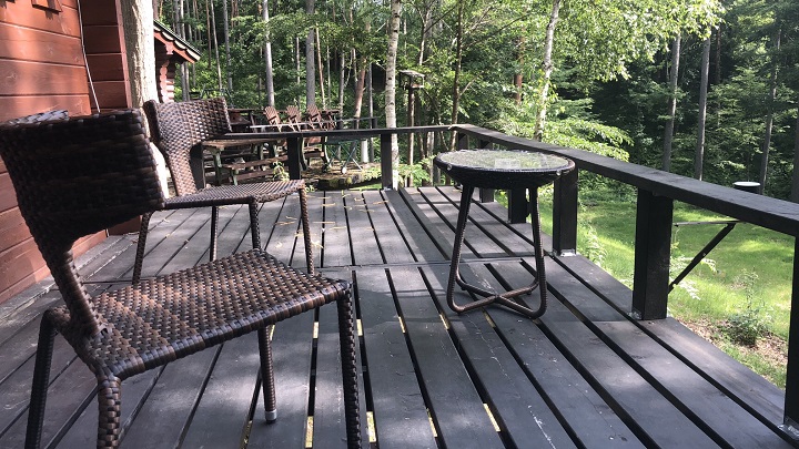 そのまま寝入ってしまったようで、目覚めたら、目の前にガーデンチェアとテーブルがあった。ベッドから落ちかけていたのだ。時計を見ると午後5時少し前。1時間近くも屋外で熟睡した事になる。気分は爽快!