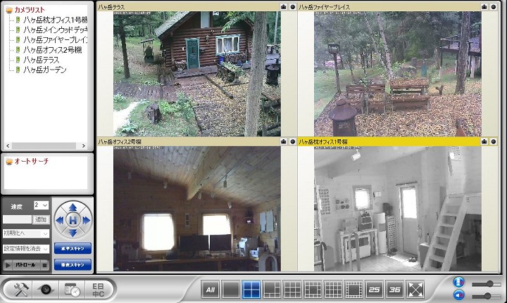 午前11時過ぎに、もう一度だけと思って「カメラ一発」のアイコンをクリック。ダメもとで、6台のカメラを一括表示するモードから、4台表示モードに切り替えてみた。すると、あらっ? スンナリと繋がった。こういう事もあるんだ… 「枕木テラス」も「ファイヤープレイス」も見た感じでは異常なし。