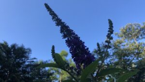 オフィス周りでは、ホスタさん達に続いて、ブッドレアが開花期を迎えている。昨年よりは2週間程早いだろうか。最初に開花したのは、オフィスと枕木駐車場の間に2015年に植えた「パープル」種である。